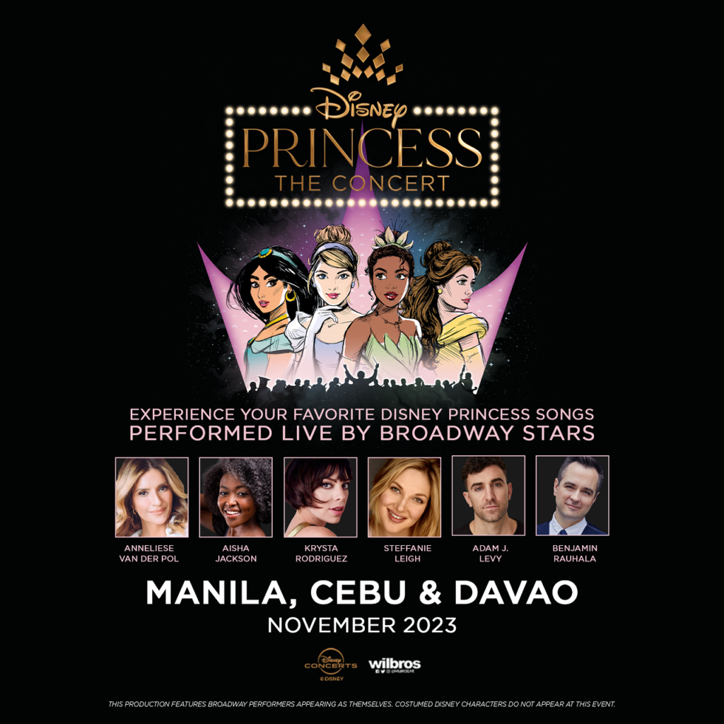 Meet the cast of Disney Princess – The Concert as a quartet of Broadway and television stars celebrate the music from every Disney Princess in an unforgettable show, alongside their magical Music Director and enchanting Prince. Catch the shows in MANILA on November 18 & 19, 3PM & 8PM at the Samsung Performing Arts Theater, CEBU on November 22, 8PM at the Waterfront Hotel Cebu City and DAVAO on November 21, 8PM at the SMX Convention Center Davao. Presented by Disney Concerts and Wilbros Live.