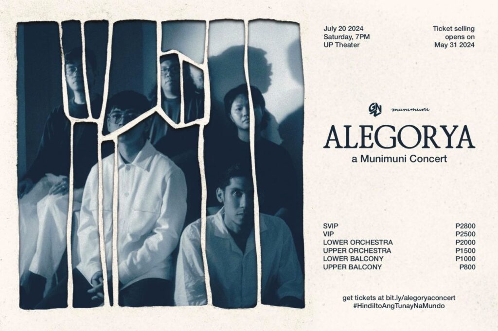ALEGORYA: A Munimuni Concert is presented by GNN Entertainment Productions and Munimuni. Tickets go on sale today at 12 noon via bit.ly/alegoryaconcert.