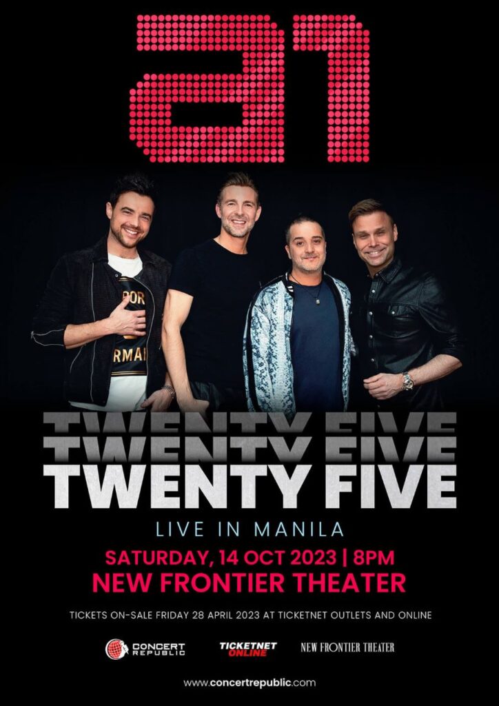 Presented by Concert Republic. A1: TWENTY FIVE – MANILA will be held at New Frontier Theater on Saturday 14th October 2023 (8PM).