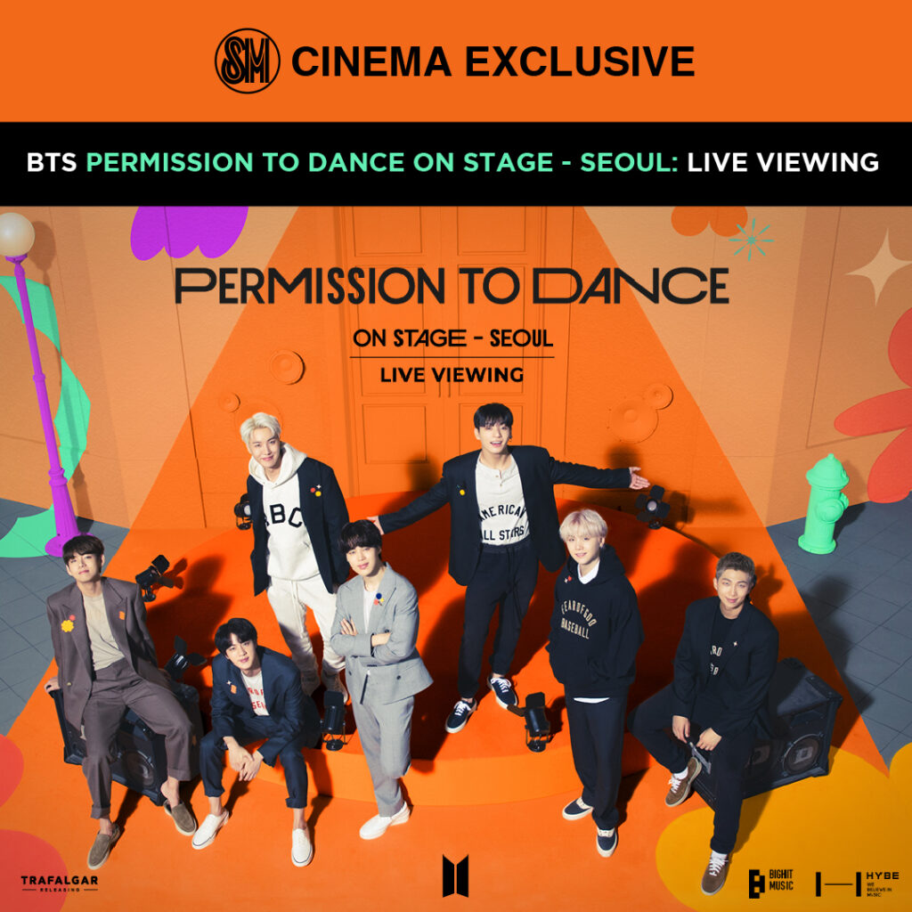 The worldwide release date for ‘BTS PERMISSION TO DANCE ON STAGE – SEOUL: LIVE VIEWING,’ the latest SM Cinema exclusive event from 21st century pop icons BTS, has been confirmed for Saturday, March 12. People worldwide will join in as BTS and ARMY become one once again with music and dance in this unmissable live* concert experience broadcast from Seoul to cinemas around the world. ‘BTS PERMISSION TO DANCE ON STAGE – SEOUL’ marks the group’s long-awaited and triumphant return to a stage in South Korea in front of a live audience for the first time since 2019. Don’t miss BTS – RM, Jin, SUGA, j-hope, Jimin, V, and Jung Kook – on the big screen in SM Cinema on March 12.