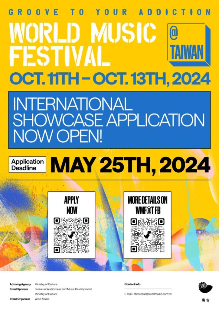 The 2024 World Music Festival @Taiwan (WMFT) is now accepting submissions for its Showcase applications until May 25th!