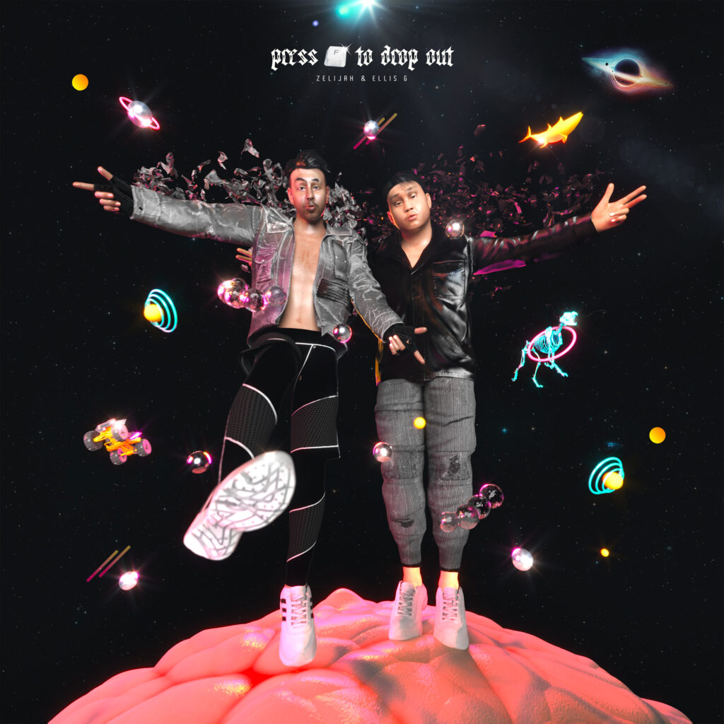 On a musical standpoint, Press F To Drop Out is an innovative piece of work that explores music beyond the fringes and outside of the two artists’ comfort zone. “We made it happen by incorporating unusual sounds and instruments, as well as trying new genres we wouldn’t usually dive into,” Zelijah points out. “The ending result is a colorful EP that caters to every emotion.”