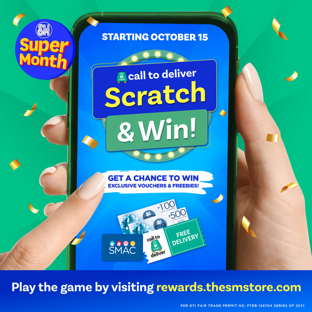 As SM continues to celebrate the birth month of its founder Henry Sy Sr. this October with Super Month, you can get a chance to win exclusive vouchers and freebies from The SM Store Call to Deliver Scratch & Win promotion starting October 15, 2021 to January 15, 2022. Play Scratch & Win by registering a Philippine-issued mobile number using mobile phones or tablets at rewards.thesmstore.com.