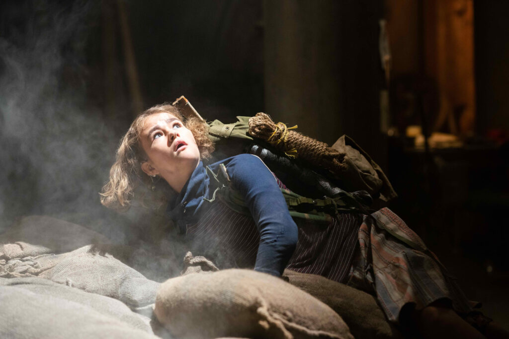“Millie faces probably the most intense challenges of any actor in the film because Regan is completely on her own for a time,” says Krasinski. “Even though her hearing aid is a weapon, she’s still in more constant danger than the rest of her family because she can’t hear if she’s making noise. What I loved about Millie’s character in the beginning is that she always had this innate sense of being a warrior princess. But now, she is also a just girl alone who has to figure out if she has the faculties to survive.”