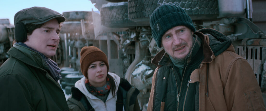 THE ICE ROAD (L-R): BENJAMIN WALKER as VARNAY, AMBER MIDTHUNDER as TANTOO, LIAM NEESON as MIKE. CR: NETFLIX © 2021