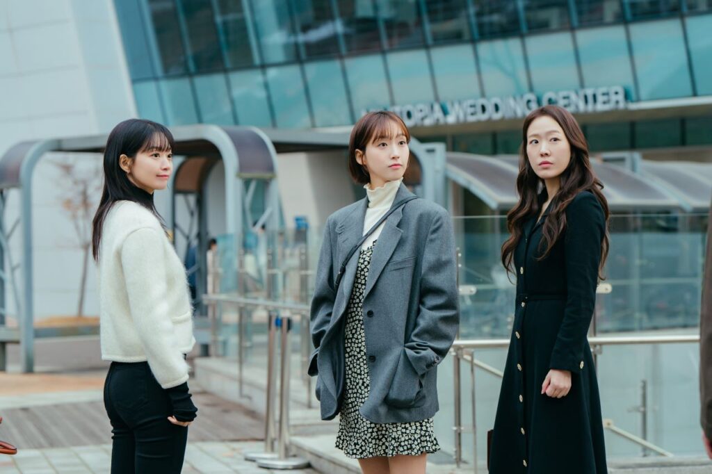 Hae-yeong, Ja-yeon, and Hui-seong (Ju Min-gyung) have a family-like relationship. Ja-yeon and Hui-seong were both foster daughters of Hae-yeong’s mother, at different times. They say blood is thicker than water, but these three have a relationship that is thicker than blood. While they might have different opinions on fake weddings and polyamorous relationships, they always support one another in the end. Whether there are celebrations or heartaches, the three sisters are consistently there for each other. Romances might come and go in life, but their ties are unbreakable. Seeing their lovely family-like friendship makes us want the same for ourselves.