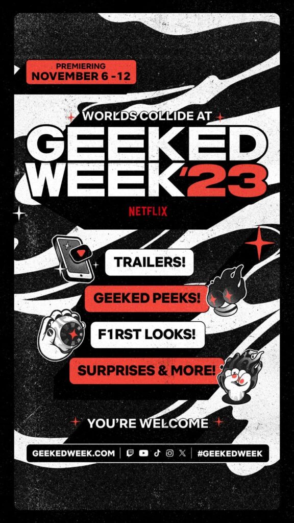 Stay glued to GeekedWeek.com because we’re about to drop announcements and secrets that will make your geeky heart skip a beat. And join us on YouTube, X, Twitch, Facebook, and TikTok to stay in the loop on all things Geeked Week and your favorite Netflix genre gems.