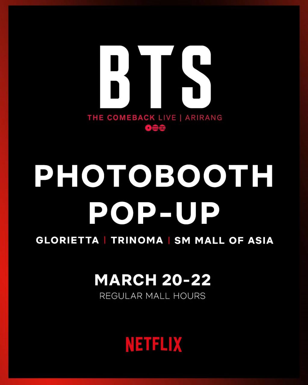 Netflix is amping up BTS’s much-awaited comeback with special activation zones across Metro Manila from March 20-22!