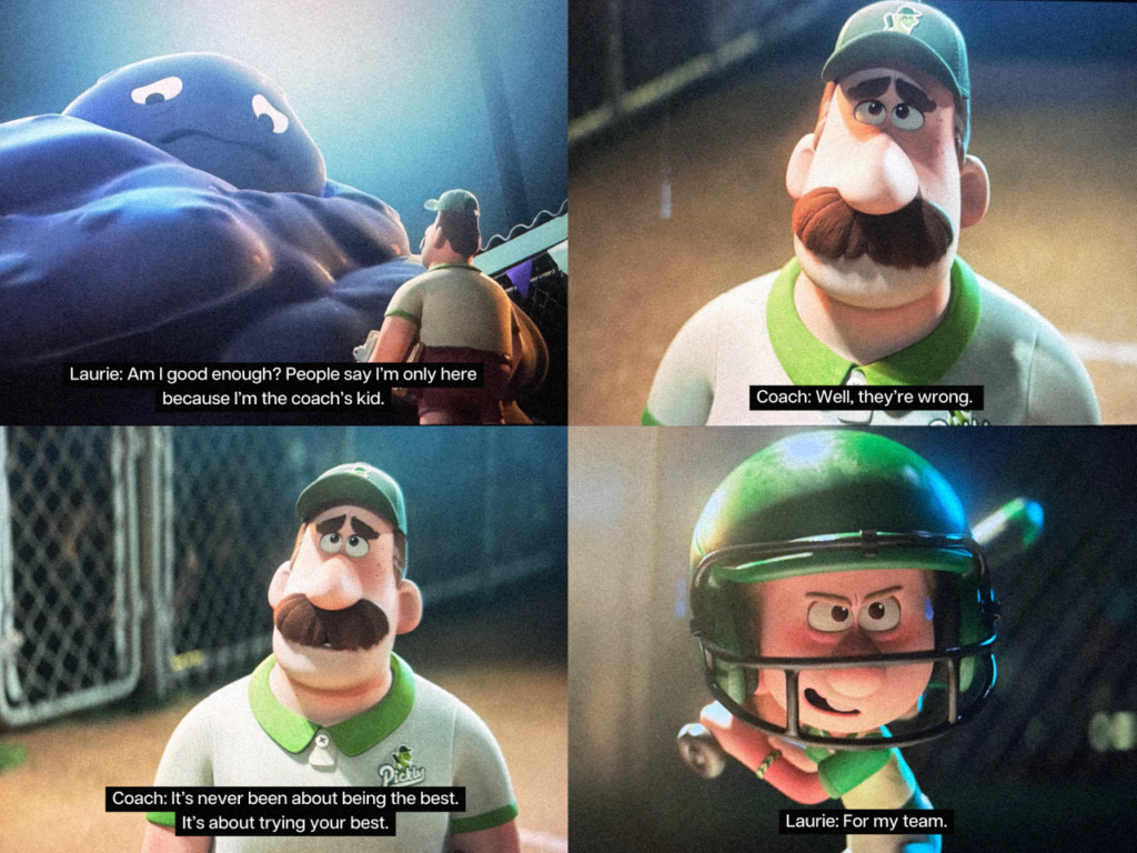 As the daughter of the team’s coach, Laurie feels a lot of pressure to do well in softball. But after a quick chat with her dad, her self-doubt, fear of getting judged, and anxieties all start melting away as she puts her game face on.