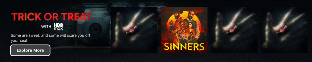 With Halloween just around the corner, we invite thrill-seekers to explore HBO Max’s Trick or Treat rail and stream hits like Sinners and Final Destination Bloodlines, as well as the upcoming early premiere of HBO Original, IT: Welcome to Derry’s episode two on October 31.