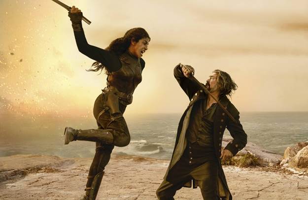 Ercell “Bloody Mary” Bodden (Priyanka Chopra Jonas) thought she had escaped her violent past as a pirate, finding peace in the Cayman Islands with her loving husband T.H. (Ismael Cruz Cordova), their son Isaac (Vedanten Naidoo) and her sister-in-law Elizabeth (Safia Oakley-Green). But when her notorious former captain, Connor (Karl Urban), arrives seeking revenge, Ercell’s world is torn apart. Forced to confront the demons she’s tried to bury, Ercell is thrust back into a deadly game of secrets and survival. Armed with lethal swordsmanship, cunning traps, and a fierce will to protect those she loves, she wages a brutal war against Connor’s merciless crew. Ercell’s fight to save her family becomes a journey of redemption, as she reclaims her power and embraces the warrior she once was. Against the breathtaking backdrop of the Cayman Brac’s Skull Cave and towering bluffs, producers Anthony and Joe Russo present The Bluff; a gritty, adrenaline-fueled action-adventure about family, survival, and the indomitable strength of a mother’s love.