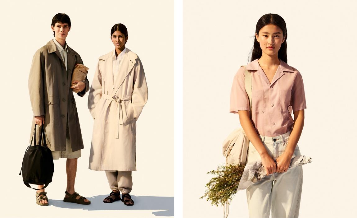 Layering pieces in soft, matte cotton and refreshing AIRism cotton meet airy utilitarian outerwear to create a complete range of versatile basics with often unexpected, always thoughtfully considered proportions. A playful yet elegant color palette combines understated neutrals and rich blues and beiges with bright pops of green, orange, yellow, purple, and pink.