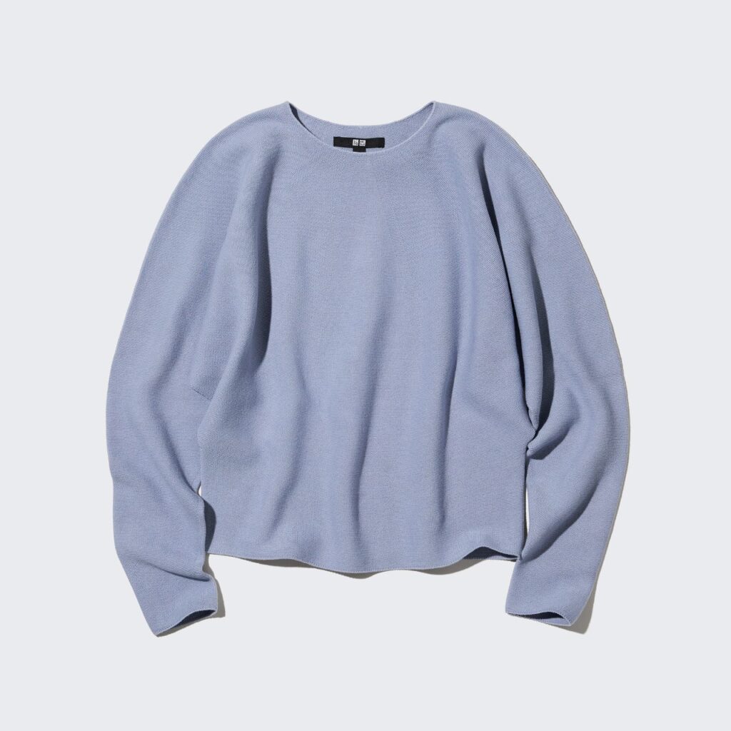 The 100% cotton sweater is gentle on the skin. It features textured knitting and a stylish silhouette, with dolman sleeves for added volume.