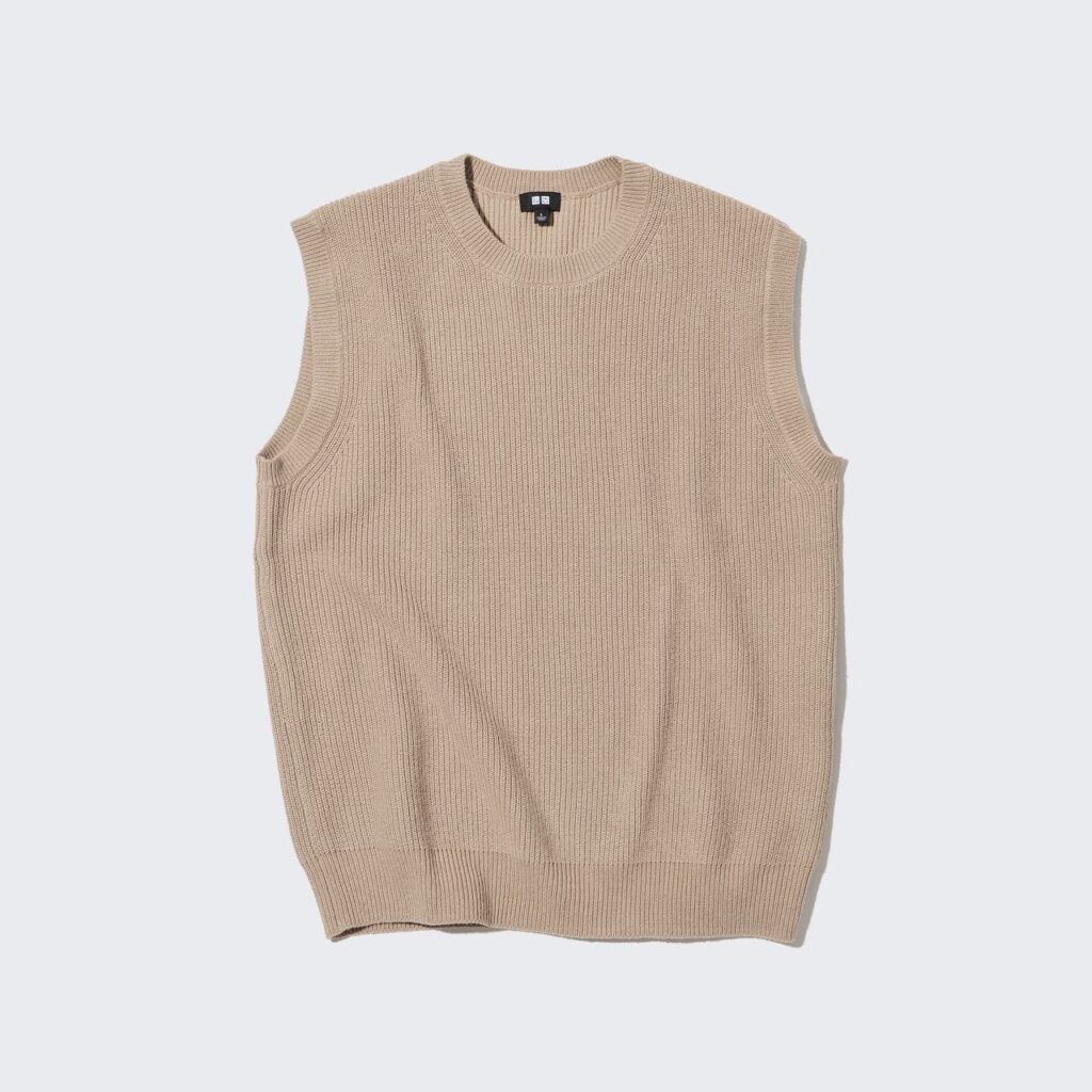 The vest features a thick yarn that produces a light and comfortable feel. This garment changes its style depending on the size. Wear the usual size for a neat look, or go for a bigger version for a casual style.