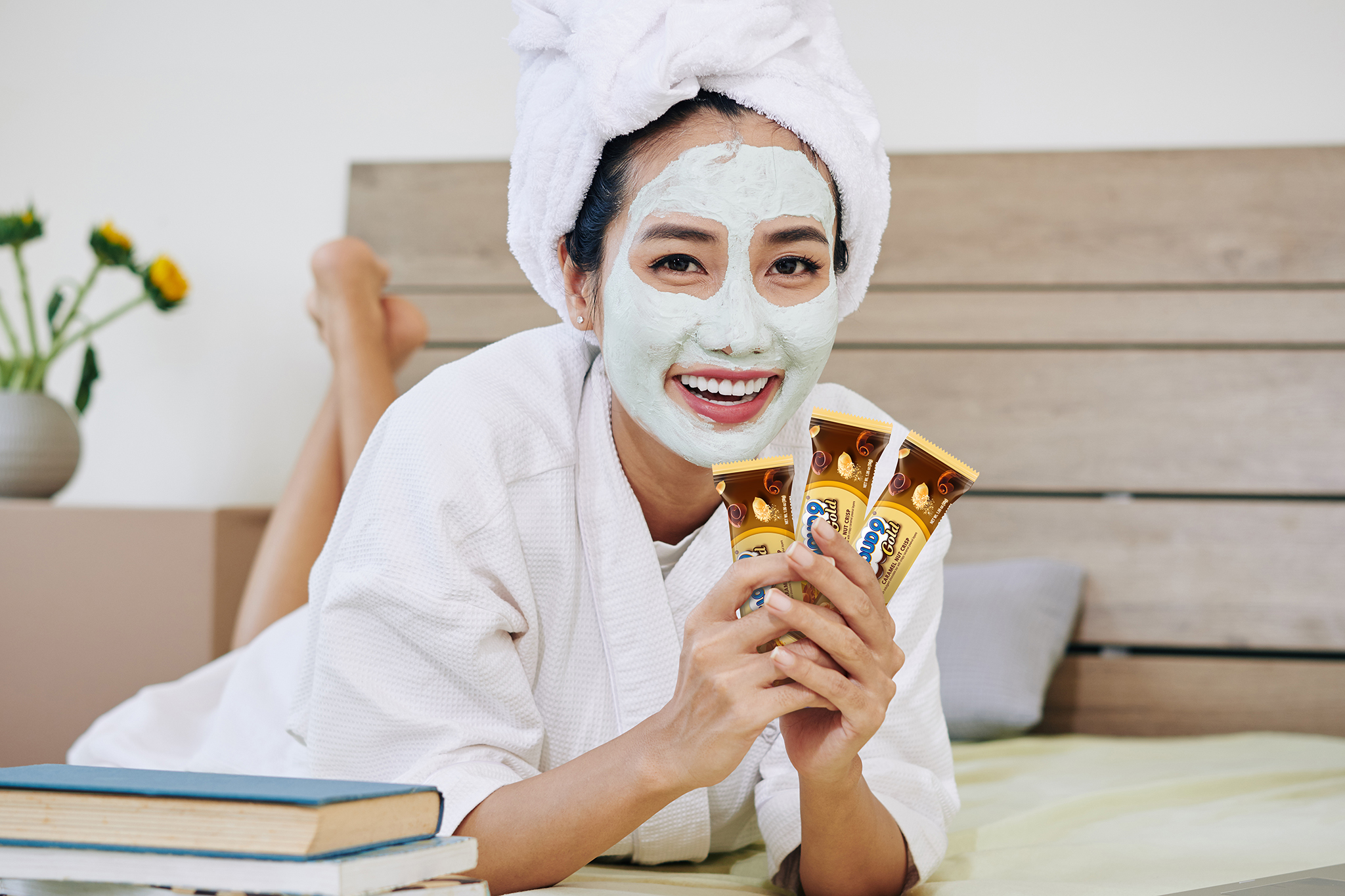 Grab a sheet mask, give yourself a manicure, or just relax with a scented candle on the side. Set up a personal spa in your living room where you can catch up on your self-care routine and slow down after a busy week. Make the experience more satisfying with the sweet-salty Cloud 9 Gold Caramel Nut Crisp, perfect to munch on while waiting for your mask to set.