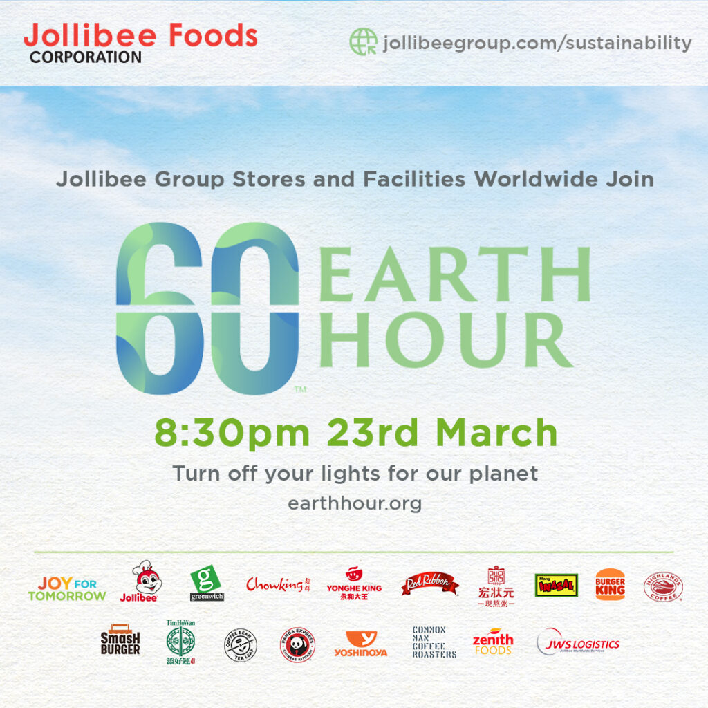 MANILA, Philippines. 22 March 2024 – Over 4,700 stores and facilities of the Jollibee Group from the Philippines, China, North America, Europe, Middle East, and Asia will be turning their lights off on Earth Hour this March 23, 2024, in solidarity with over 190 countries to raise awareness about the environmental impact on the planet of climate change.