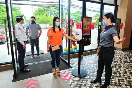 Before entering the store, customers are required to go through a 3-step safety check—sanitizing shoe soles via a disinfectant mat, strict wearing of face mask, and contactless checking of temperature. To strengthen COVID-19 monitoring and contact tracing, customers are also required to fill-out a health declaration form in compliance with the DTI guidelines.