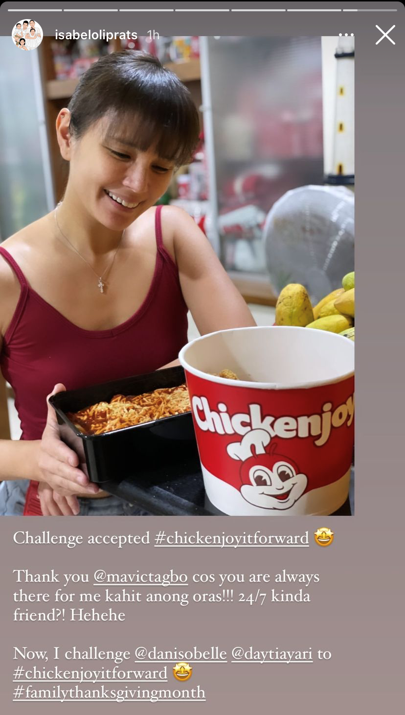 The Asia’s Songbird, Regine Velasquez-Alcasid, also shared her #ChickenJOYitForward entry. In her Instagram post, Regine said that one way she keeps Nate happy despite them not being able to kiss or hug for safety reasons, is by bonding over Jollibee meals.