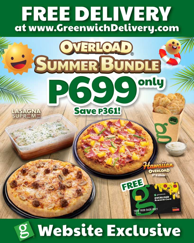 This early, plan your pizza party with the barkada with Greenwich’s Overload® Summer Bundle. This deal will be exclusively available on the Greenwich website, www.greenwichdelivery.com, from March 1 to 15, 2023, only.