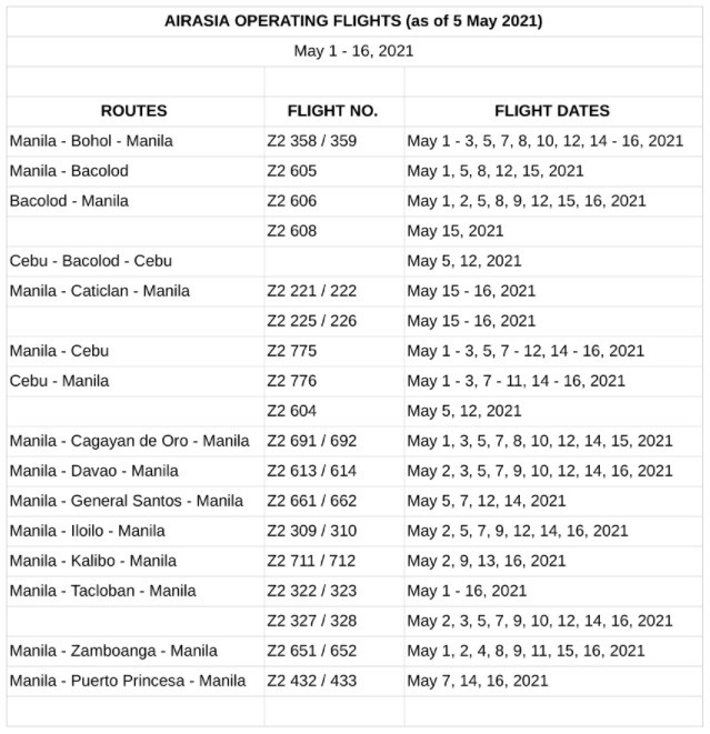 All other domestic flights to and from Manila will continue to operate subject to compliance with Local Government Unit (LGU) restrictions on frequencies and capacity.