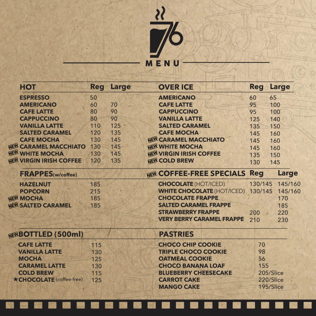 All these are available on top of the wide array of certified favorites of Cinema ‘76 Café’s patrons — Cafe Mocha, Salted Caramel Latte, and Popcorn Frappe with prices starting at P60 for regular-sized drinks. Any of these flavorful drinks pair very well with Cinema ‘76 Cafe’s signature pastry treats, such as the ever-popular banana loaf and Goyo-inspired mango cake.