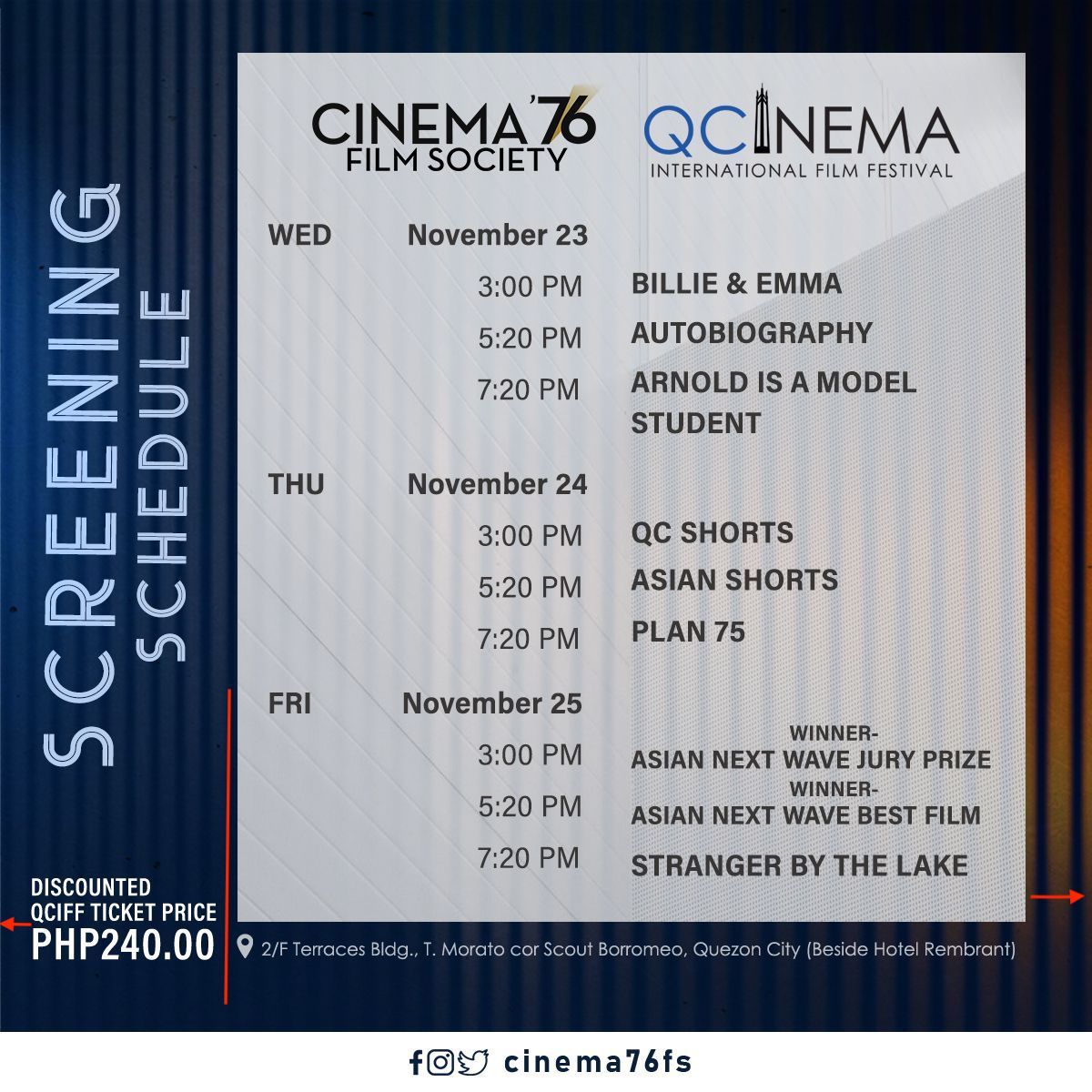 It’s a double celebration this November as Cinema ’76 Film Society finally reopens their new branch in Tomas Morato with a lineup of movies from the 10th QCinema International Film Festival.