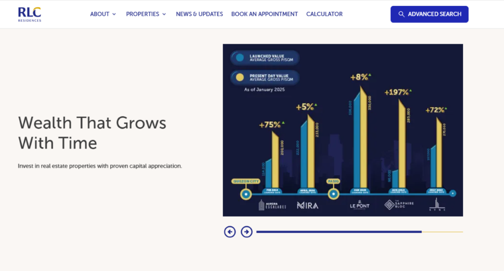 The RLC Residences website serves as a practical tool for today’s real estate investors. You can easily toggle between pre-selling and ready-for-occupancy units, depending on your preferred timeline and goals. If you’re weighing your options, the platform allows for side-by-side comparisons, giving you insights into location, amenities, and availability to help you make informed decisions. It also provides updated trend details, such as property value appreciation, to help you assess long-term potential more clearly. And with access to market-savvy features like news updates, helpful articles, and financing calculators, you stay in the know without feeling overwhelmed.