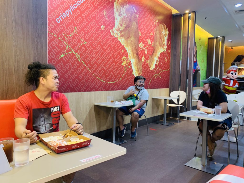 Queueing for orders and entry also observe one (1) meter distance on all sides. Chairs are distanced at least one (1) meter apart as well. For face-to-face seating, there are plastic dividers in between and chairs are positioned diagonally. The maximum number of allowable persons are indicated at each store front. Food servers consistently observe personal hygiene, handwashing and wearing personal protective gear like masks and face shields. Alternative cashless transactions are also available per establishment to minimize personal contact.
