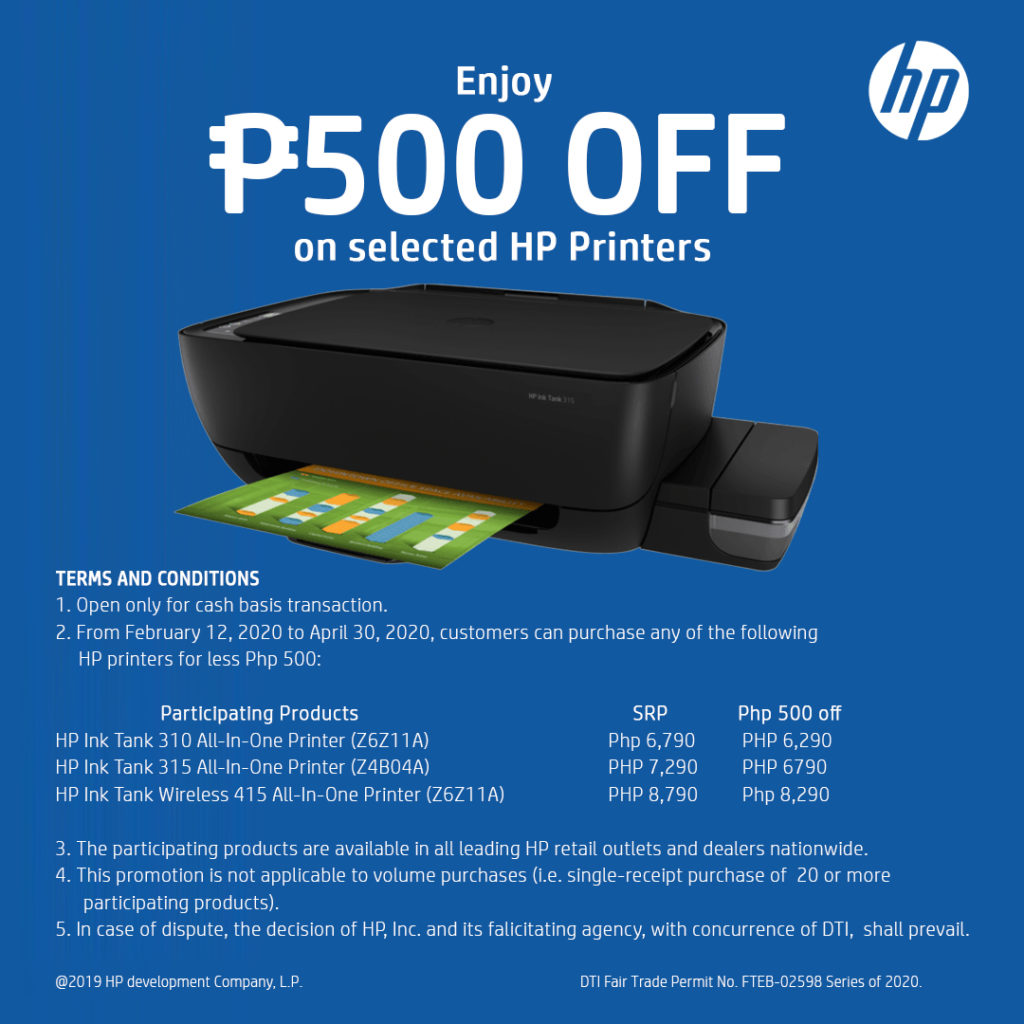 That’s because buying selected HP Ink Tank All-in-One printers today can instantly get P500 off their regular price! That’s great savings which one can use to reward themselves or treat the family.