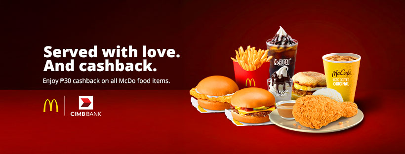 Treat yourself to your favorite McDo goodies today and earn cashbacks using CIMB Pay. To know more about this promo, visit cimbbank.com.ph/cimbxmcdo