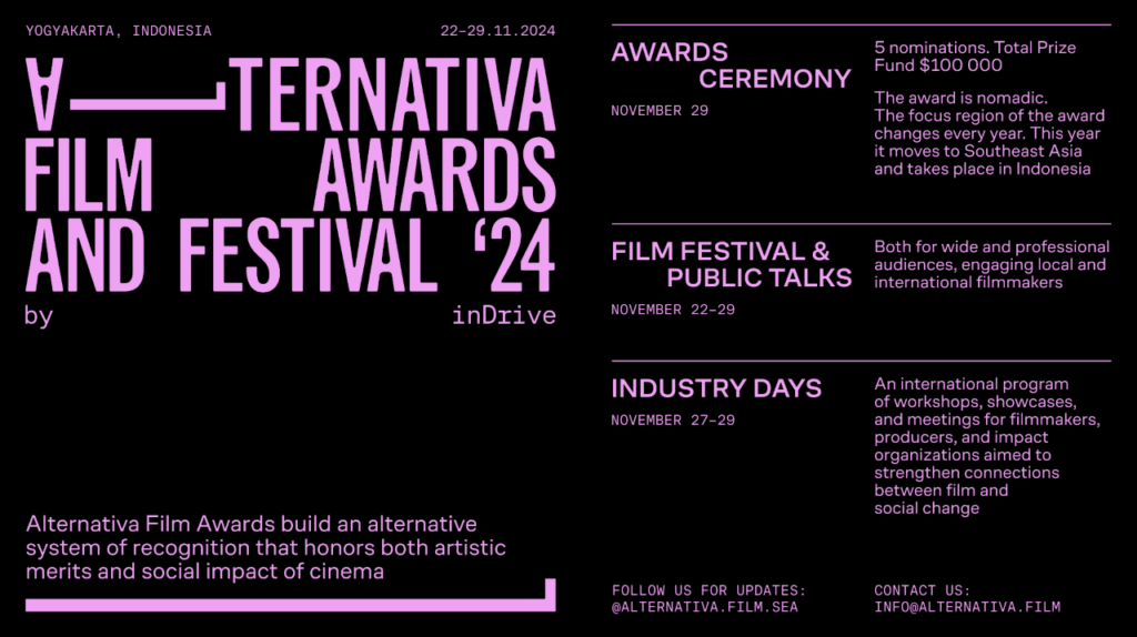 The Alternativa Film Awards Selection Committee, consisting of 24 international film experts, will announce the nominees in mid-October. Winners, chosen by an International Jury made up of directors, producers, community leaders, and NGO representatives, will share a total prize fund of $100,000. Four winners in the full-length film categories will receive $20,000 each, while two winners in the short film categories will receive $10,000 each, to support their future filmmaking efforts or impact campaigns.