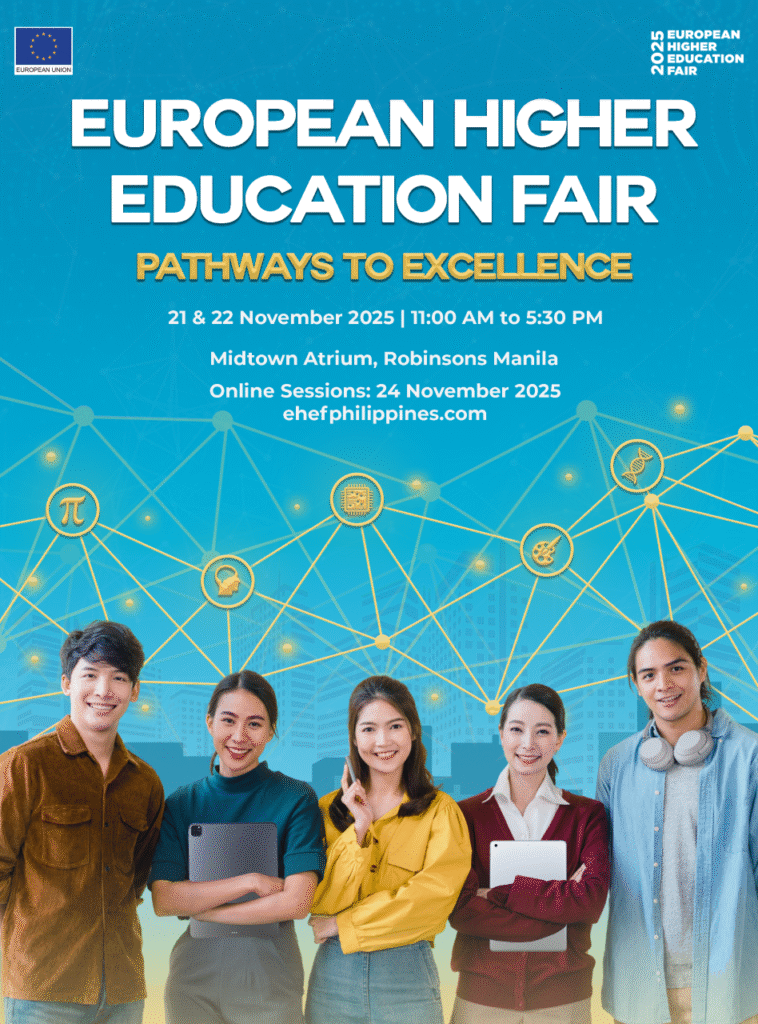 The EHEF 2025 will offer a hybrid experience, with onsite activities on 21 and 22 November at the Midtown Atrium in Robinsons Manila, and online thematic webinars on 24 November. The Fair serves as a gateway to world-class education in the EU, offering students, academicians, and researchers the opportunity to explore pathways that can shape their future.