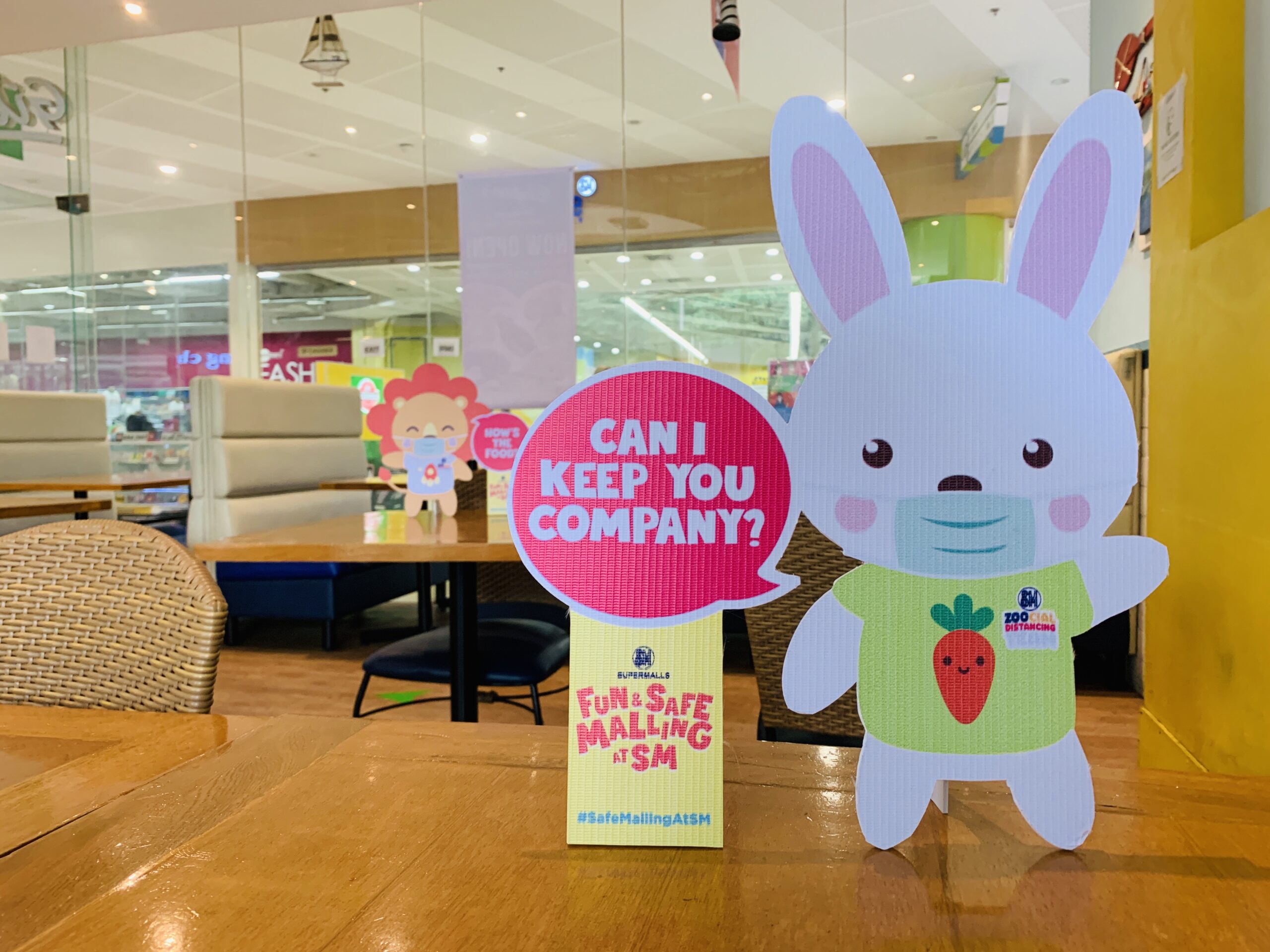 A cute reminder to maintain social distance at SM City Masinag Atrium