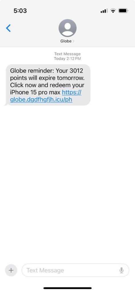 Customers have reported receiving spoofed messages impersonating Globe’s sender ID, inviting them to click dubious links supposedly to claim their Globe Rewards. These malicious links are meant to steal personal information, including credit card details.