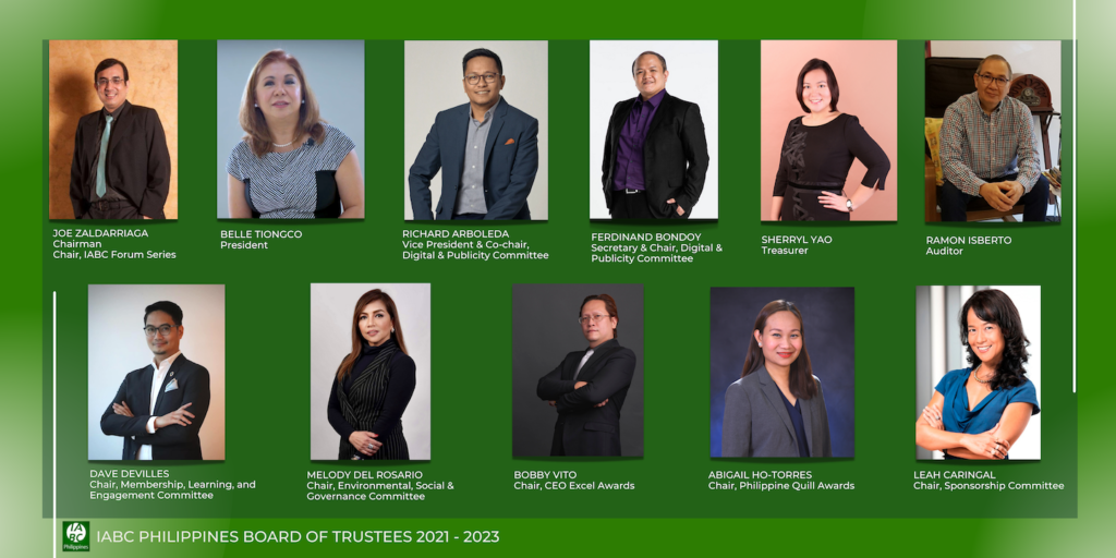 The International Association of Business Communicators (IABC) Philippines announced its new Board of Trustees for 2021 – 2023 with proven expertise and fresh perspectives in the dynamic field of business communications.