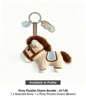 ● CHAGEE Pony Plushie Charm bundles with selected beverages (limited to two bundles per customer)