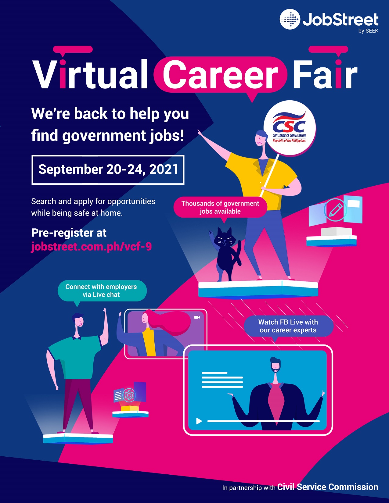 More than 24,000 government job vacancies nationwide will be offered to jobseekers as the leading online job portal JobStreet hosts its Virtual Career Fair in partnership with the Civil Service Commission (CSC) happening on September 20 to 24.