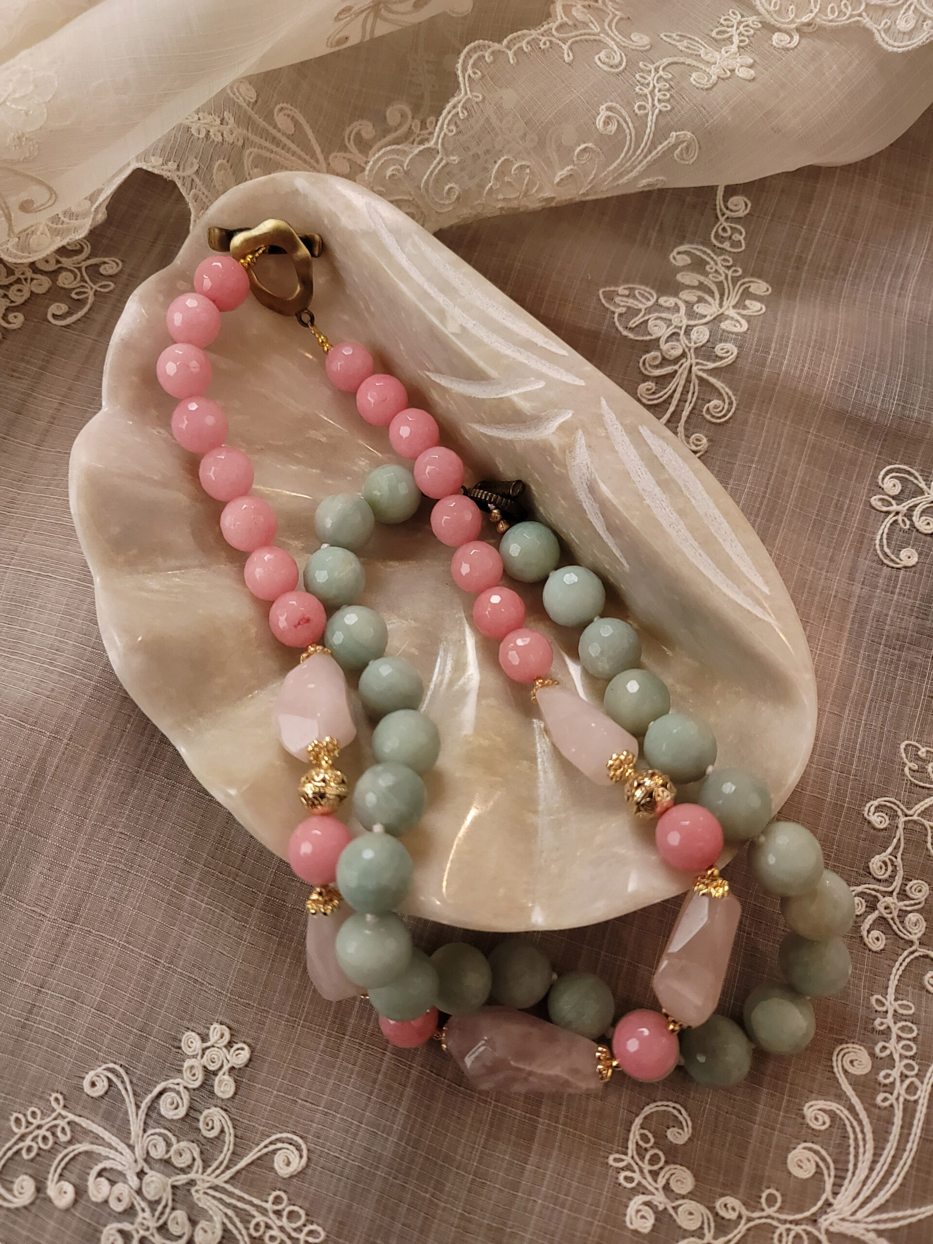 Pretty summer necklaces with jade and rose quartz inspirations from Kultura.