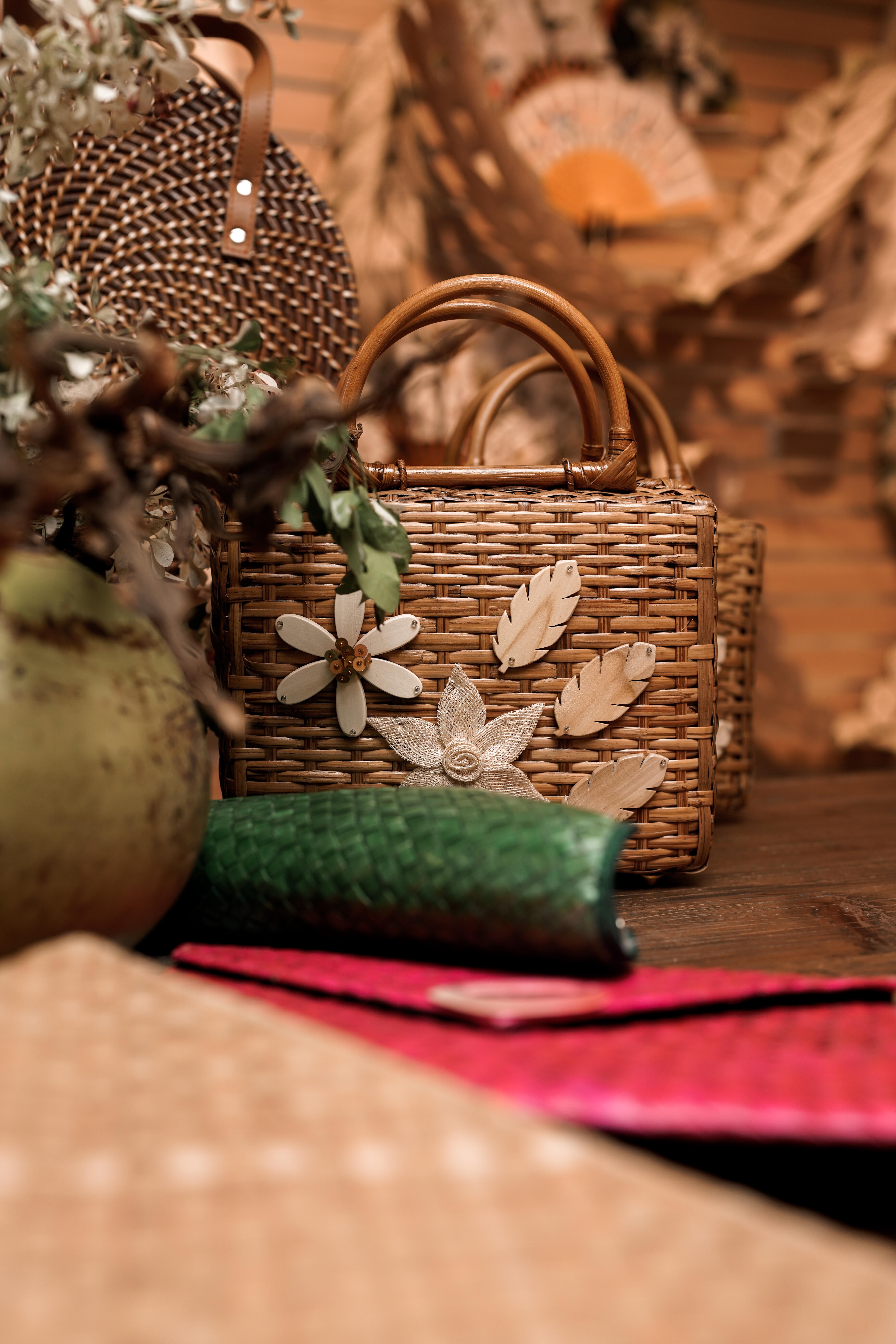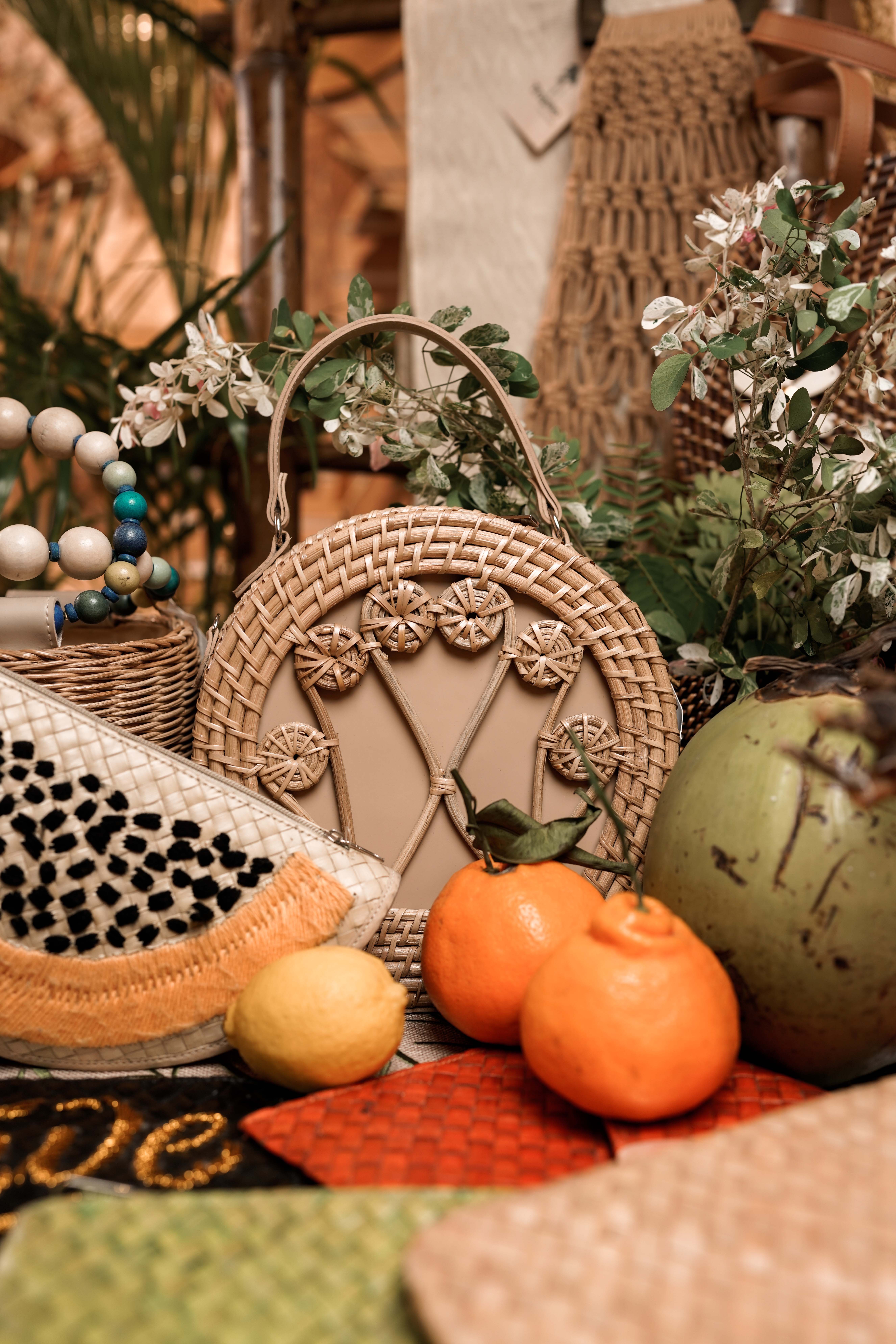 Watermelon and round shaped bags handmade from natural materials like rattan and pandan by talented Cebuanos.