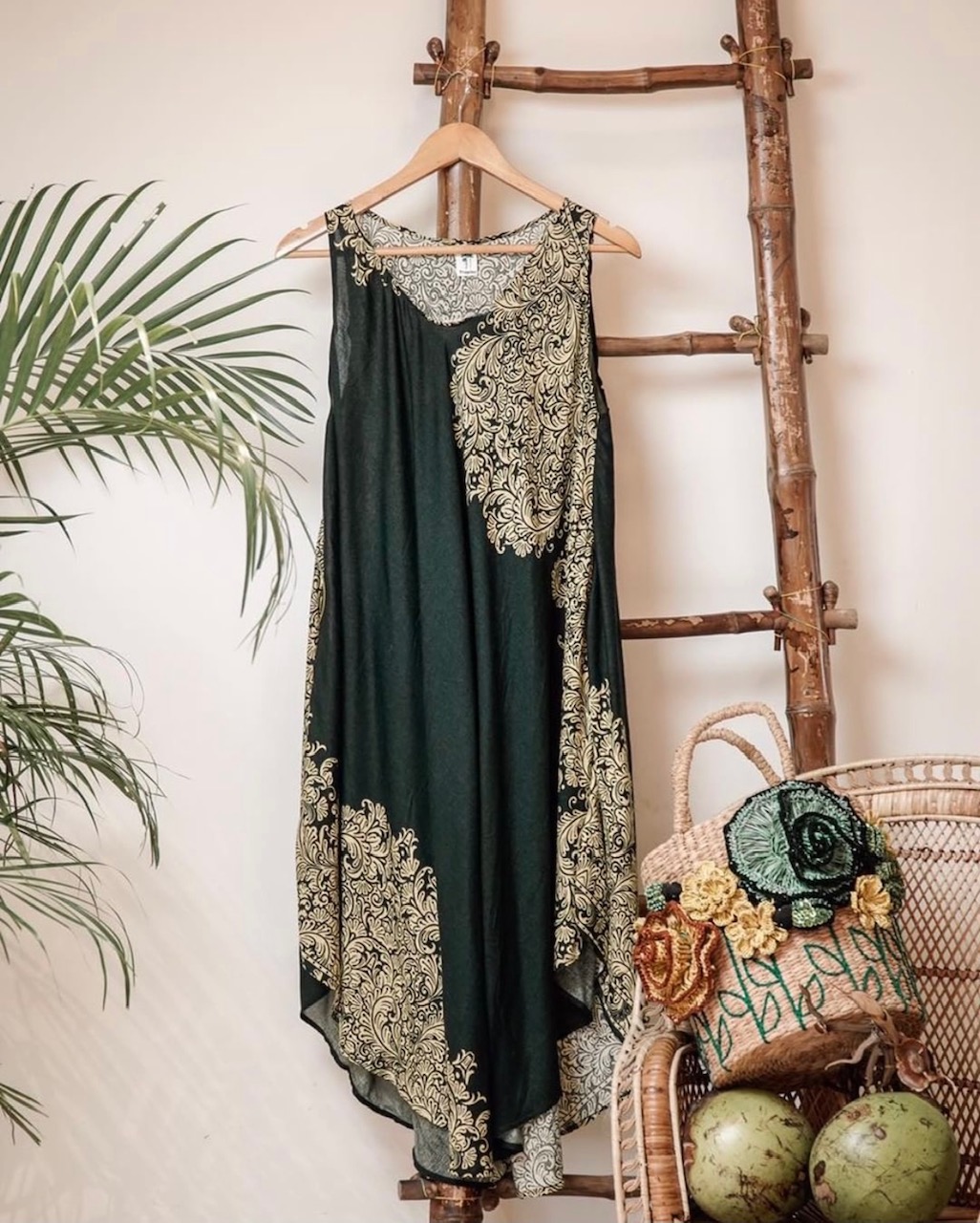 This umbrella dress with batik style prints is great for lounging at home and for your little weekend getaways.
