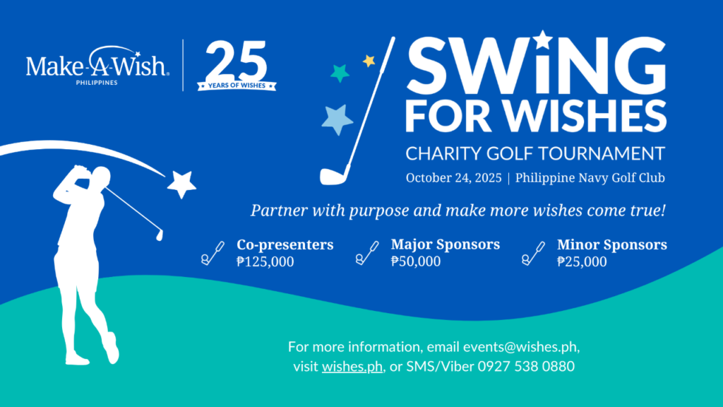 Nonprofit organization Make-A-Wish® Philippines announces its first-ever charity golf tournament, Swing for Wishes, which will mark the culmination of its 25th anniversary in the country.The proceeds raised from the event will help make 525 life-changing wishes come true this year, reaffirming the foundation’s commitment to bringing hope, strength and joy to children with critical illnesses.