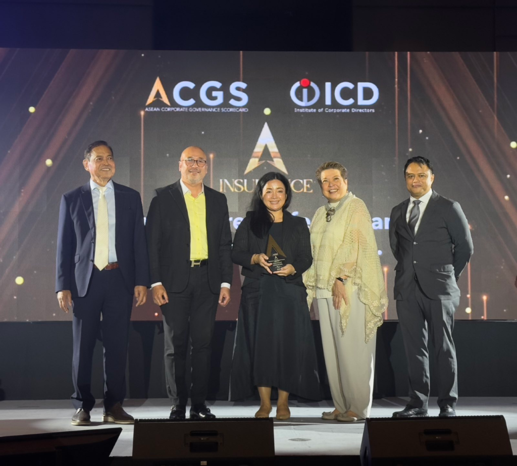 Also in the picture are (from left) ICD Chairman Pedro Maniego Jr., President and CEO Jonathan Juan Moreno, ICD board member Maria Celeste S. Narciso, and Deputy Commissioner of the Insurance Commission Martin John Yasay.