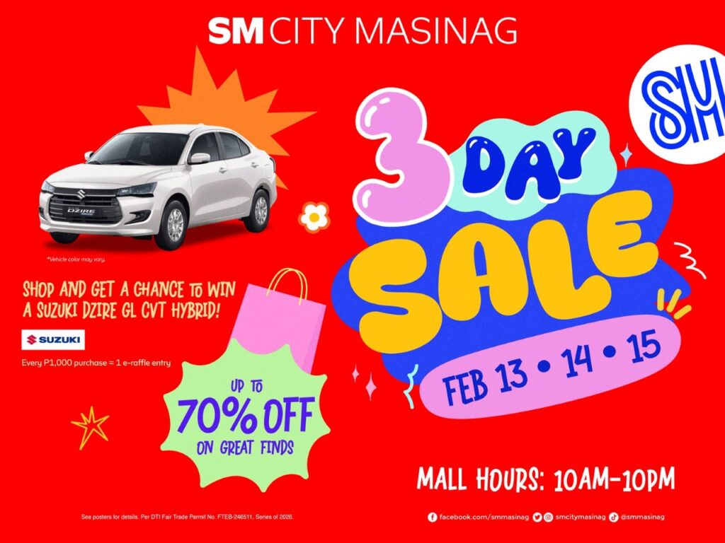 Get ready to max out your shopping gala at the most-preferred shopping destination in lower Antipolo! SM City Masinag is turning up the excitement with its much-anticipated 3-Day Sale happening on February 13, 14, and 15—three full days of unbeatable deals, exciting promos, and chances to win big.
