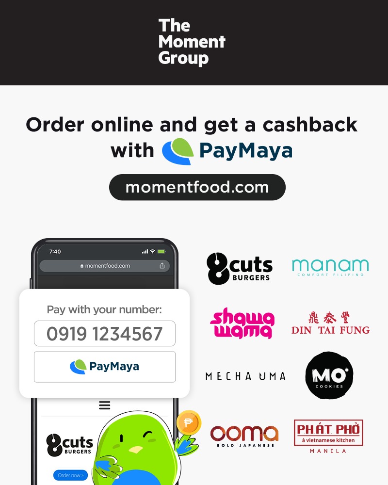 “The safety and convenience of our loyal patrons is a top priority for The Moment Group, and offering cashless payments for our online and physical stores in partnership with PayMaya goes a long way towards reinforcing that. We want to continue serving everyone with good food alongside a safer payment experience across all our channels,” said The Moment Group Co-Founder and Creative Director Abba Napa.