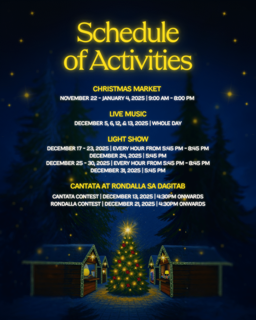 The light show will run every night starting December 17 to 31, 2025 at Samyo Gardens and Luntian Garden Venue.