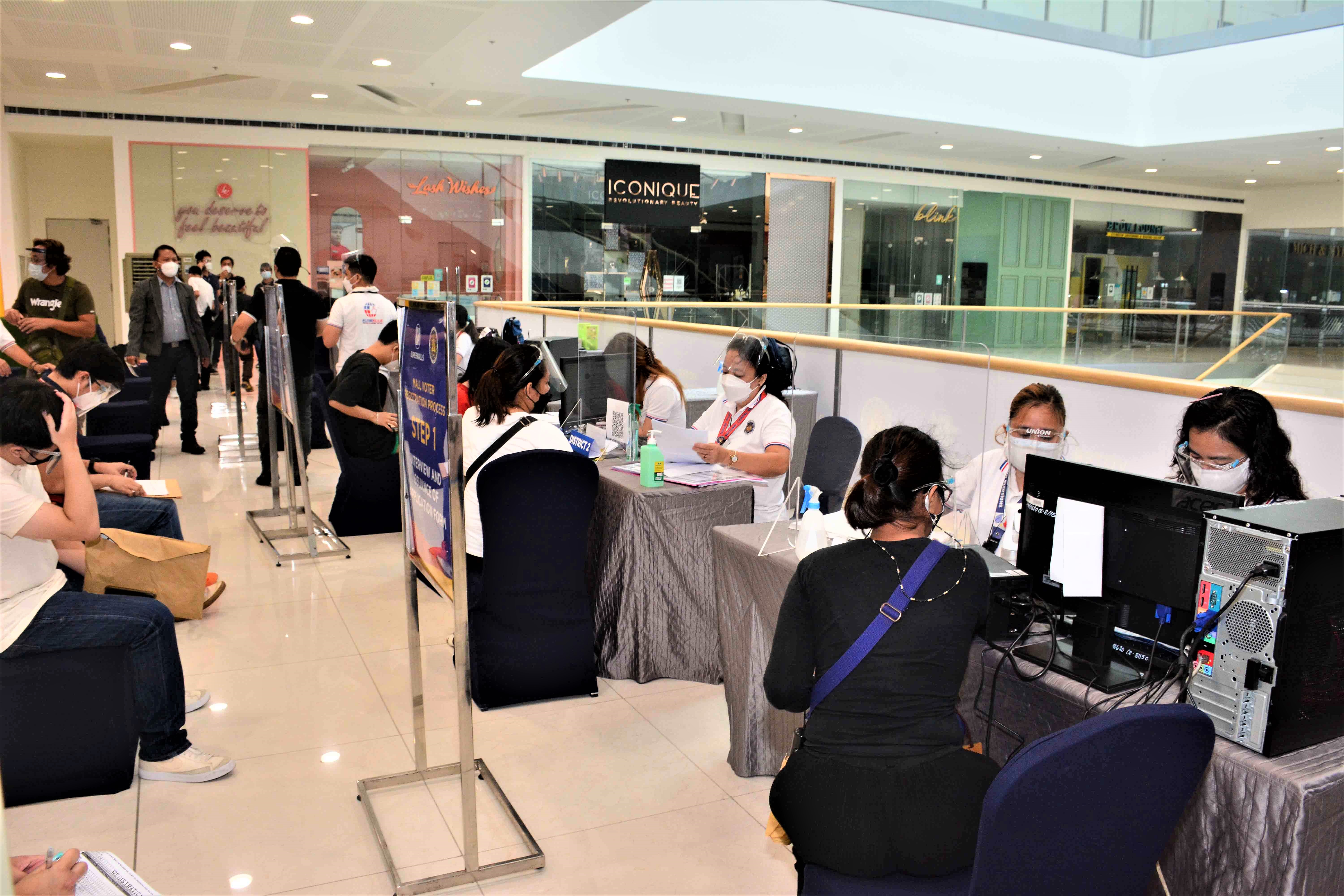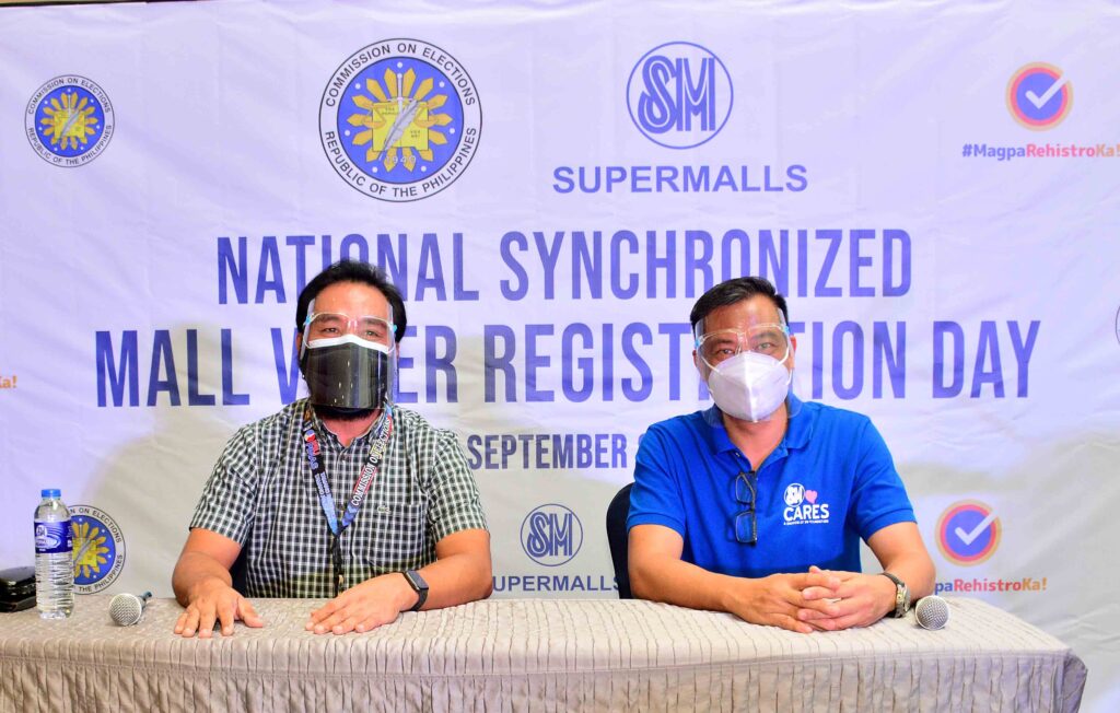 COMELEC recently held the National Synchronized Mall Registration Day at 40 SM Malls to accommodate more voter applicants before the voter registration deadline. SM Malls strictly implemented the health and safety protocols and ensured that registration set ups are conveniently accessed by registrants. Photos show registrants at the SM Mall of Asia and Dir. Temie P. Lambino, COMELEC NCR Regional Election Director and SM Supermalls SVP for Operations Bien Mateo.