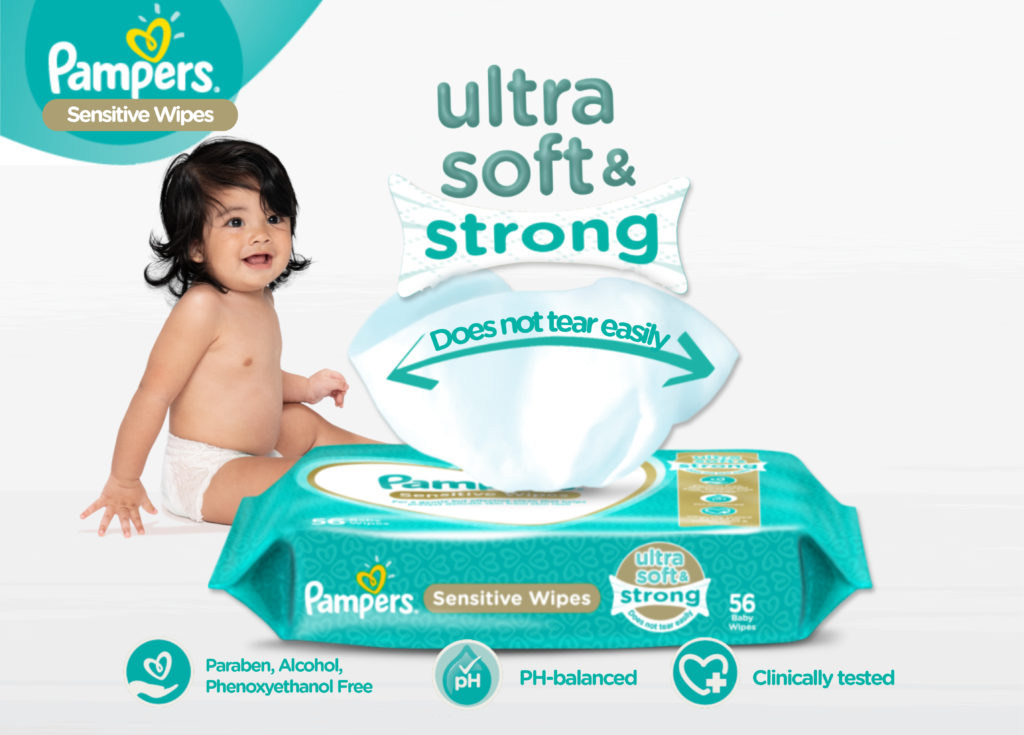 Whether you’re at home or outdoors, add the new Pampers Sensitive Wipes to your diaper-changing routine so you have peace of mind that you only give total protection to your baby’s delicate skin.