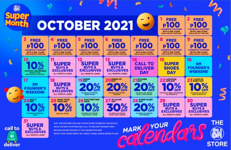 Deals for Days. Mark your calendars for super deals everyday throughout the month of October as The SM Store celebrates Super Month.