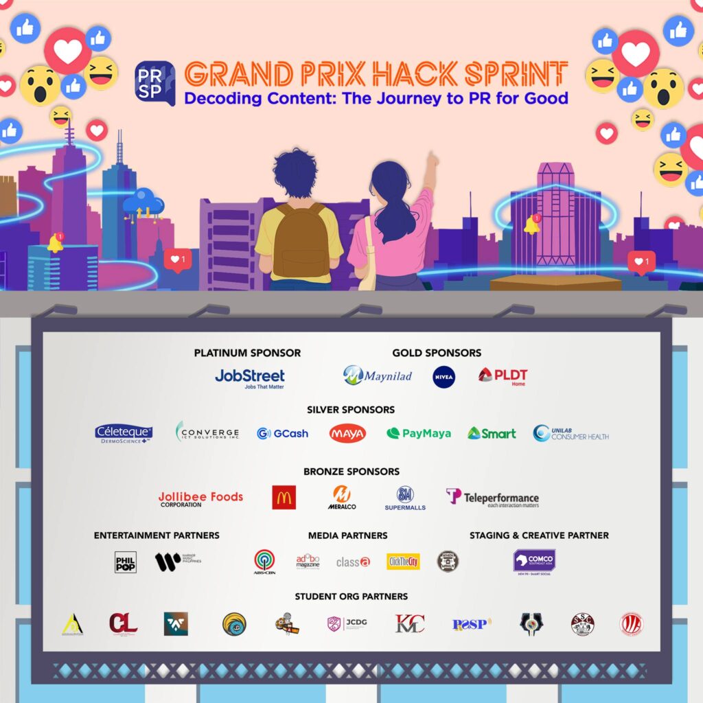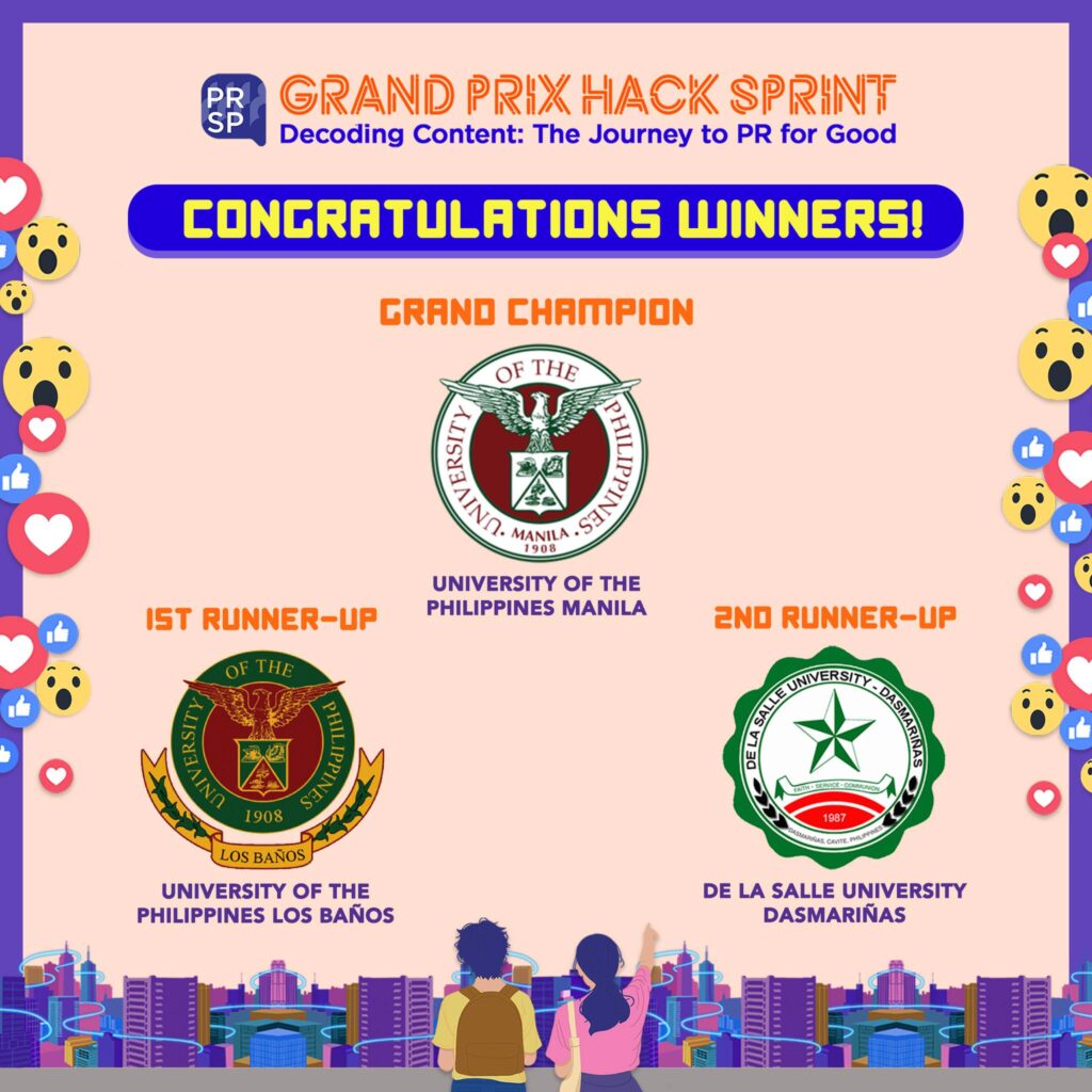 The Public Relations Society of the Philippines (PRSP) has finally concluded the Grand Prix Hack Sprint Edition, the second leg of this year’s Students’ PR Con, the first virtual, interactive, and nationwide edition of the organization’s Students’ PR Congress.