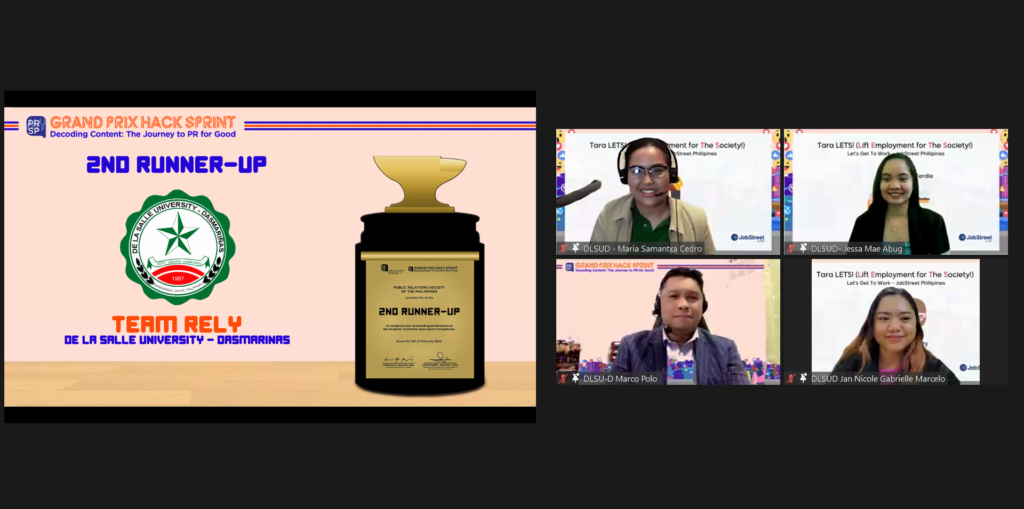 Being the first Hack Sprint edition of PRSP’s annual student event and competition, this year’s Grand Prix was fully virtual wherein to qualify, students from all over the country were invited to submit a position paper about “The Great Resignation”, a current social issue being tackled across the world, provided by the initiative’s Platinum Sponsor JobStreet.